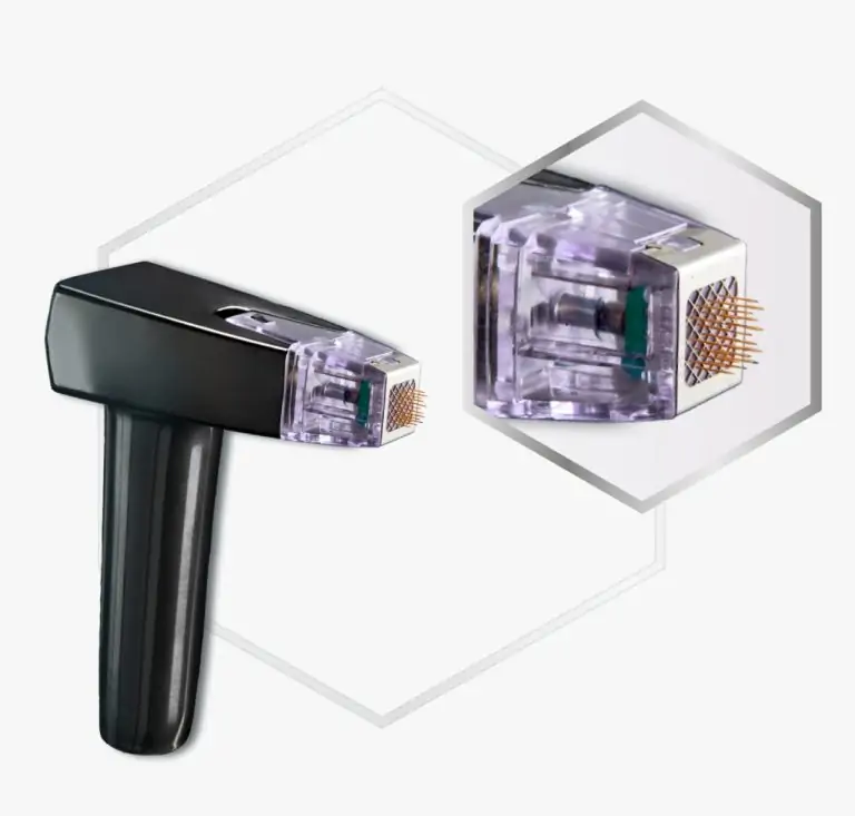 Tecnologia com microagulhas e radiofrequência que trata flacidez, textura e gordura localizada na pele.